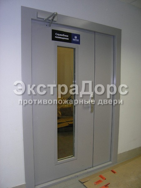 Двухстворчатая противопожарная дверь с прямоугольным стеклом в Зеленограде