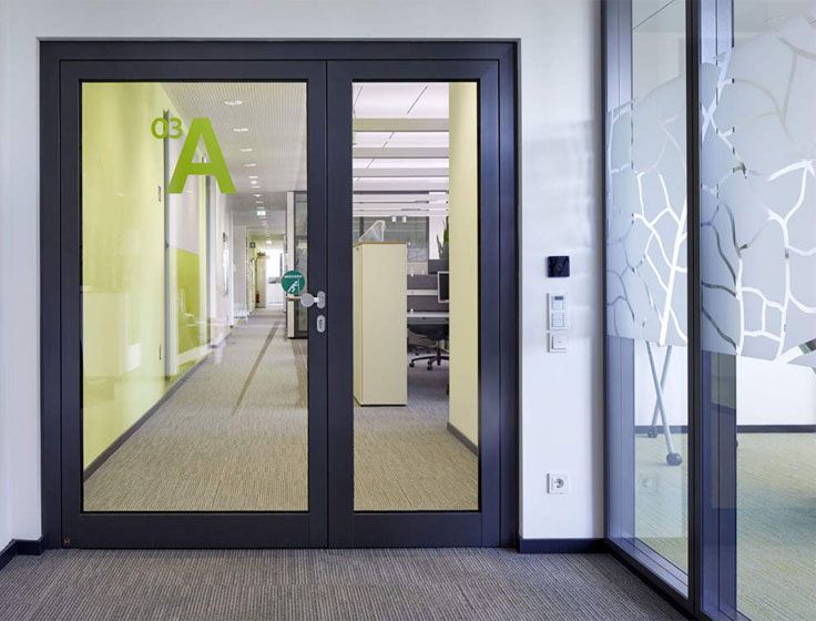 Противопожарная алюминиевая дверь со стеклом для офиса в Зеленограде