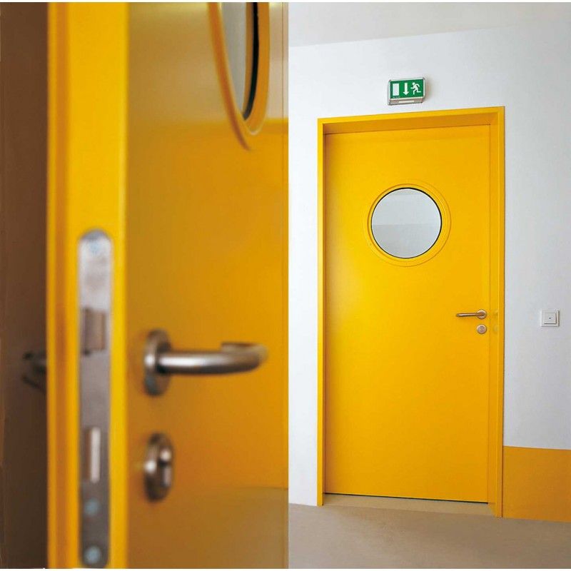 Противопожарная алюминиевая дверь со стеклом желтого цвета в Зеленограде